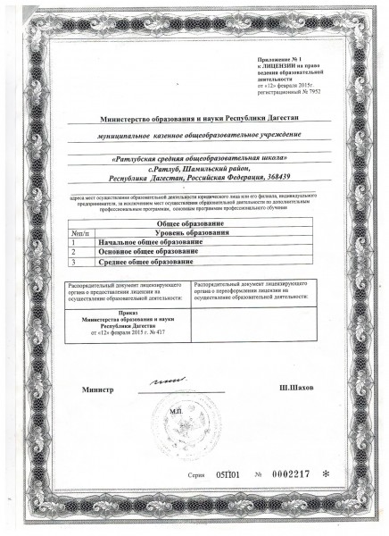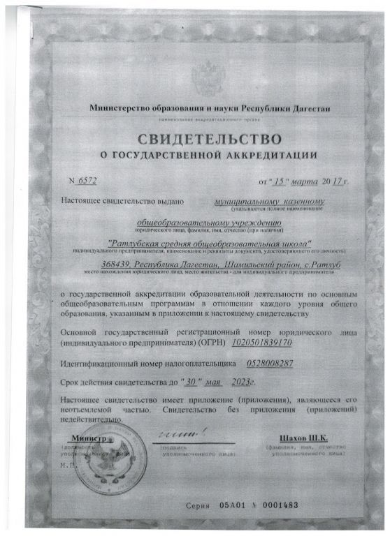 | Адрес местонахождения образовательной организации* | 368439,Республика Дагестан, Шамильский район, сел. Ратлуб |
